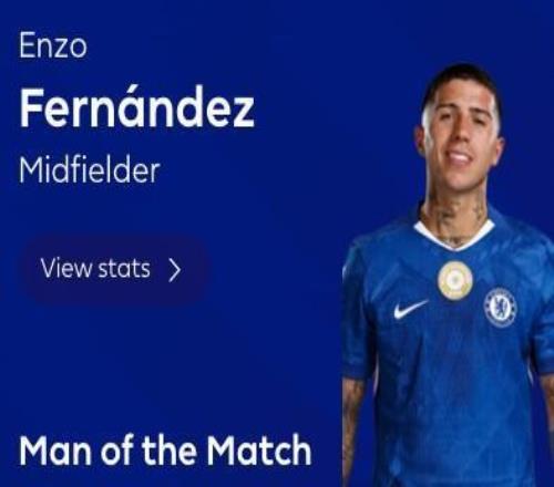 最終經(jīng)過英超官網(wǎng)球迷投票,恩佐以39%的得票率力壓佩德羅-內(nèi)托(37%)當(dāng)選全場最佳球員。